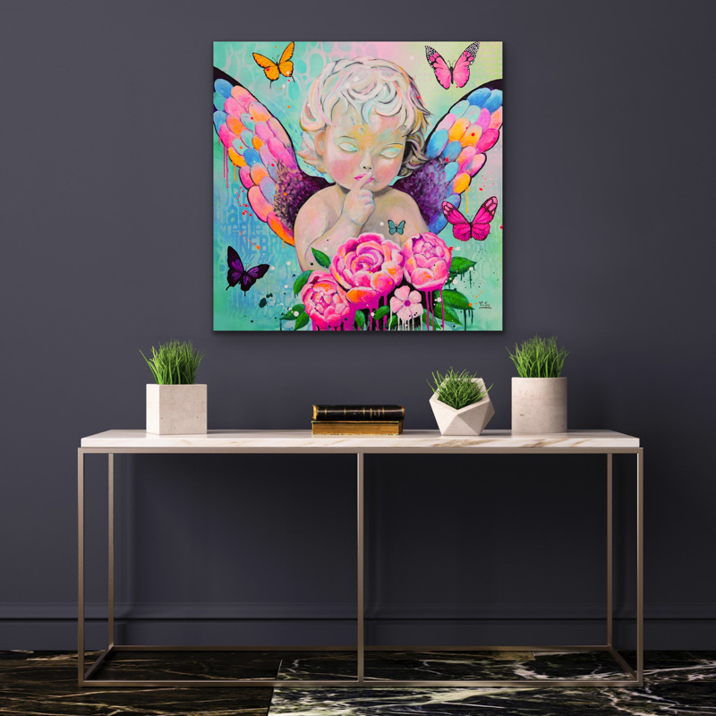 Ideal für helle, freundliche Räume, in denen Optimismus und Kreativität spürbar sein dürfen. „THE SECRET: INNER ECHOES“ bringt Leichtigkeit in Wohnräume, Ateliers, Praxen oder Kinderzimmer und ergänzt moderne Interieurs mit einem frischen, positiven Akzent.