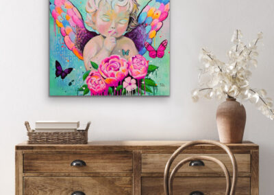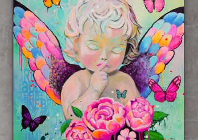 Leise Worte, die in uns nachklingen: Shine Bright. Rise Above. Be Bold. Dieses handgemalte Mixed-Media-Gemälde erinnert an Begegnungen, an Menschen und Momente, die uns geprägt haben. Zwischen Schmetterlingen, Blüten und sanftem Licht entsteht ein Bild voller Zuversicht – ein Symbol für die Kraft stiller Botschaften und die Stärke eines positiven Mindsets.